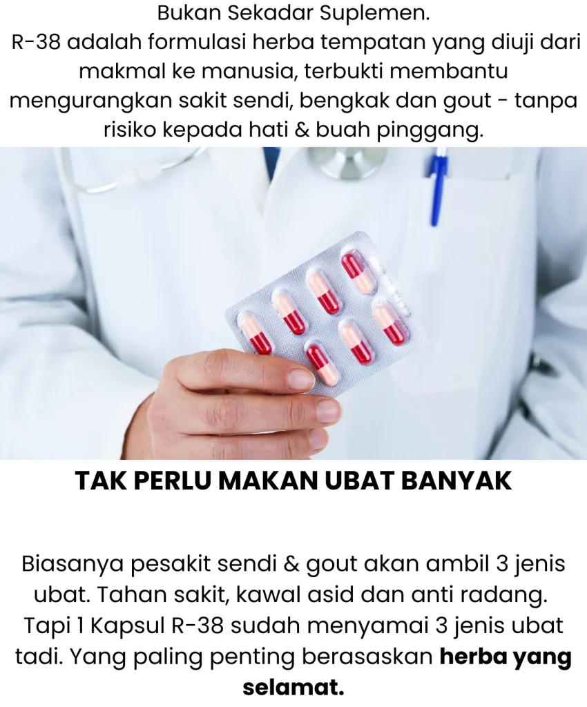 1 KAPSUL R38 BERSAMAAN 3 JENIS UBAT PESAKIT GOUT.