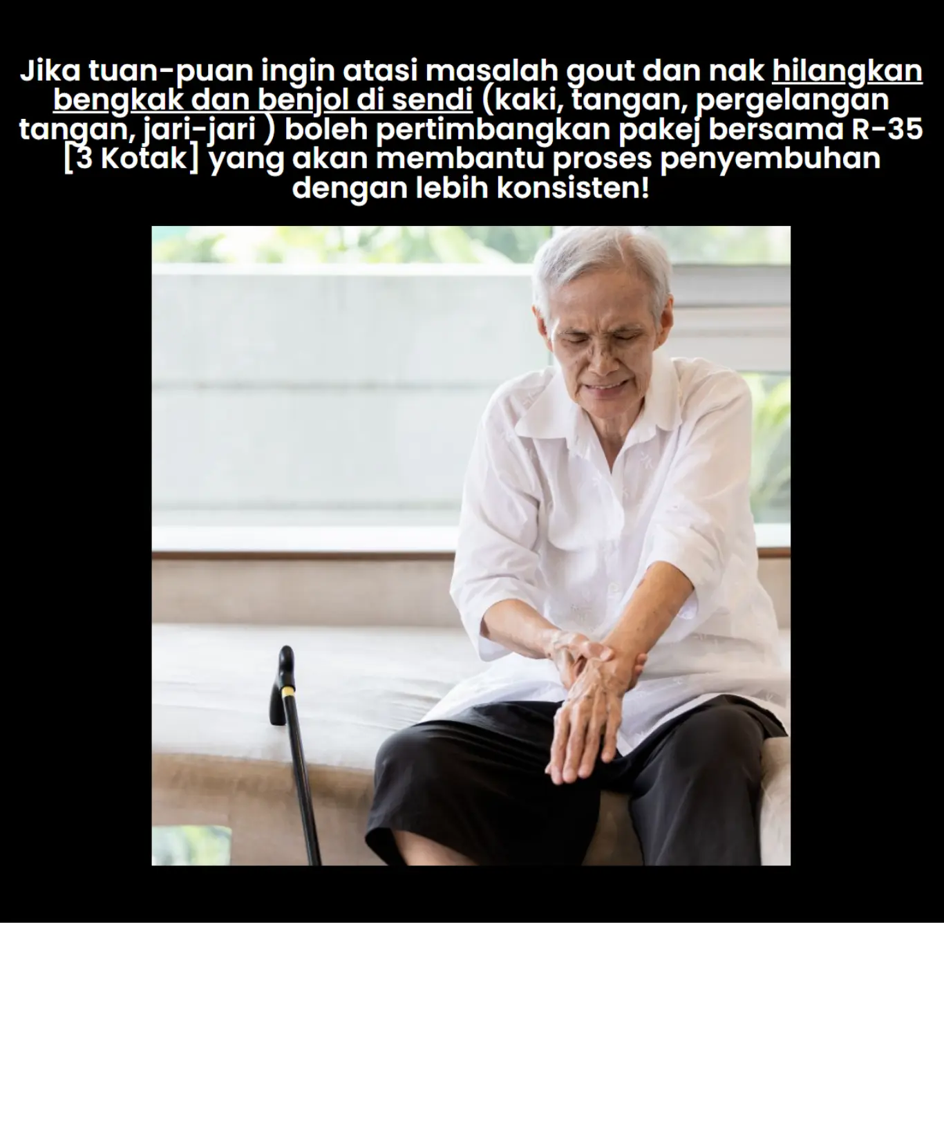 Jangan Risau, dengan kapsul R38, In Shaa Allah masalah sendi & gout anda beransur pulih…